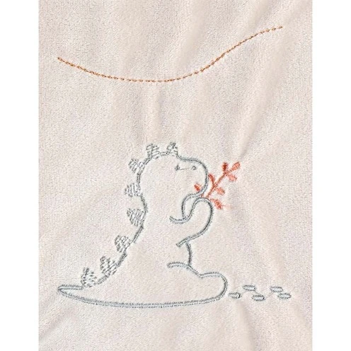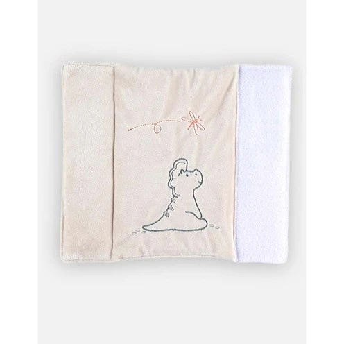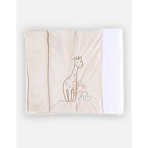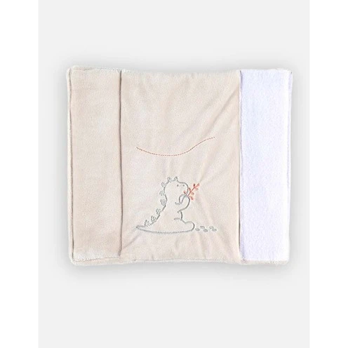 – Les protèges barreaux en Veloudoux beige rebrodés des personnages de la collection Tiga, Stegi & Ops sont parfaits pour s’adapter aux barreaux ronds ou plats de tous les lits bébés.