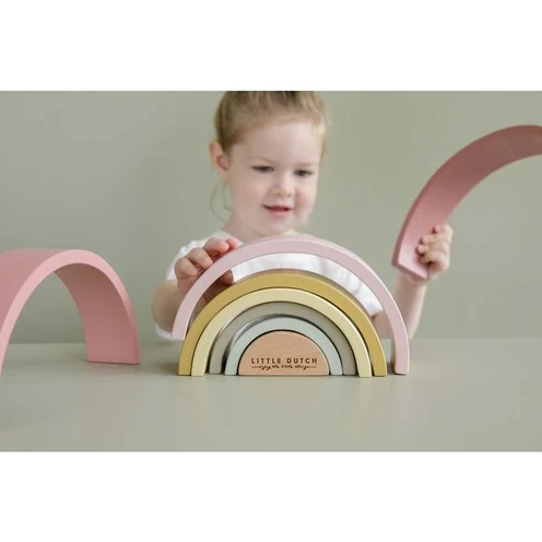 L’Arc en ciel en bois de Little Dutch est une tour à empiler qui prend la forme d’un superbe arc en ciel.