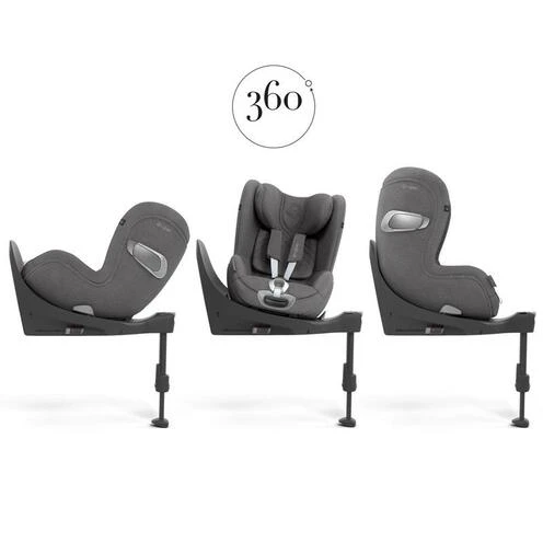 Installez votre enfant facilement dans la voiture grâce à son mécanisme de rotation, permettant de faire pivoter le Cloud T i-Size de 180° et jusqu’à 360° pour le Sirona T i-Size.