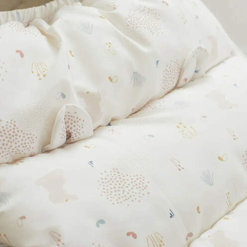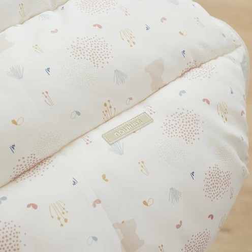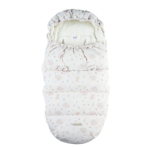 La chancelière en toile écru est l’indispensable pour vos promenades avec la poussette.