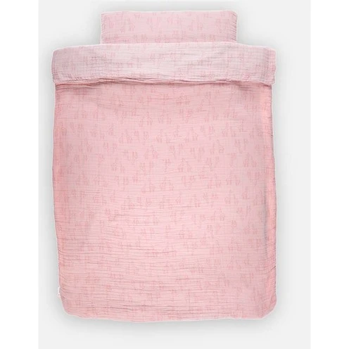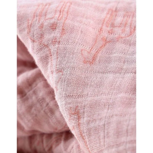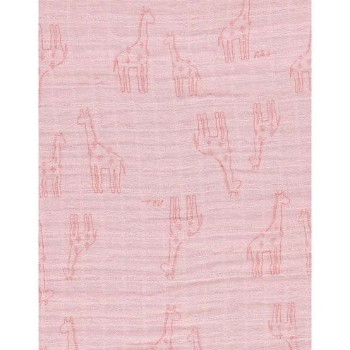 Retrouvez la housse de couette rose en mousseline de coton BIO de la collection Mix & Match imprimée girafes, elle peut aussi être utilisée comme couverture et reste toujours bien en place sous le matelas.