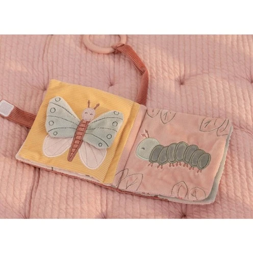 – Il dispose également d’un miroir pour pour la découverte de soi et d’un anneau pour attacher le livret à la poussette.