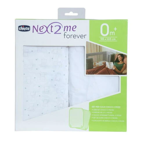 – Draps housse adaptés aux dimensions du matelas des berceaux Chicco Next2Me Forever et aux berceaux avec un matelas 110 x 58 cm.