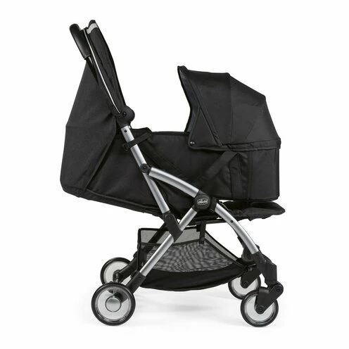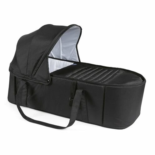 Utilisable dès la naissance jusqu’à 6 mois, la nacelle souple Chicco se fixe facilement à la poussette à l’aide d’attaches sur les côtés.