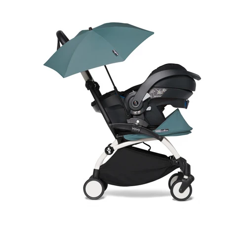 L’ombrelle YOYO s’adapte à toutes les versions de YOYO (pack nouveau-né, nacelle, ou 6+) et se fixe également sur le siège-auto.