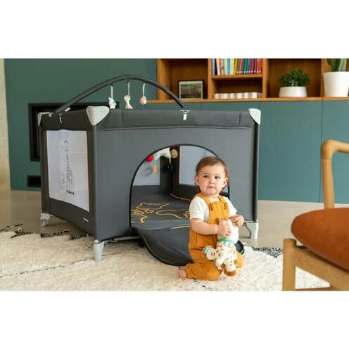 Grâce à son pliage facile et rapide, ce parc avec porte et arche de jeux s’emporte partout, chez des amis, les grand-parents…