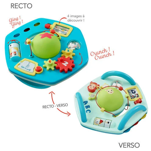 – Evolutif, il offre plusieurs positions de jeux à plat ventre, assis, à quatre pattes une vraie innovation.