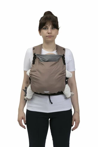 – La capuche présente une double configuration : lorsqu’elle est abaissée, elle apporte un soutien supplémentaire au cou du bébé, lorsqu’elle est relevée, elle offre intimité et protection solaire pendant les siestes ou les journées ensoleillées