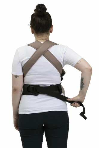 – Le porte-bébé est équipé de bretelles rembourrées qui se croisent dans le dos pour répartir parfaitement le poids du bébé, associées à une ceinture rembourrée qui transfère correctement le poids