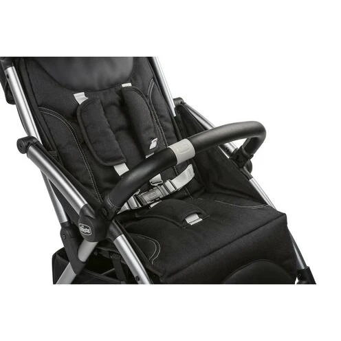 – Siège large et confortable avec arceau de sécurité et couvre-harnais rembourrés au niveau des épaules et de l’entrejambe.