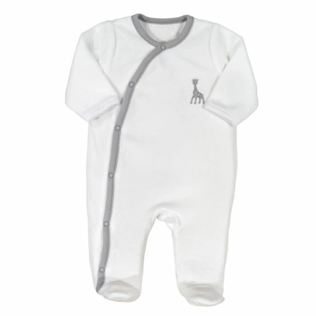 Dors bien naissance fille en velours, rose tendre. Ouverture facile pour le change et col claudine pour le style.