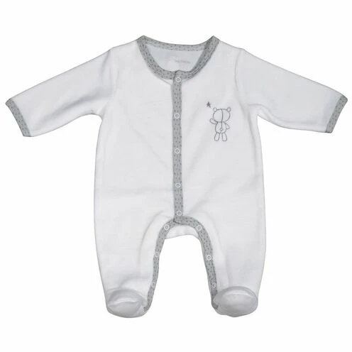 Pyjama en velours blanc et gris taille 1 mois de la marque Sauthon Babywear