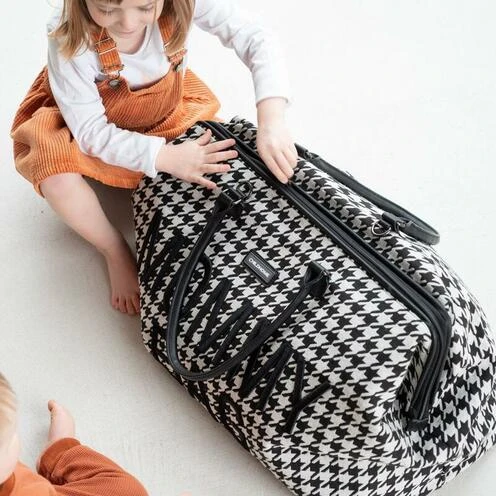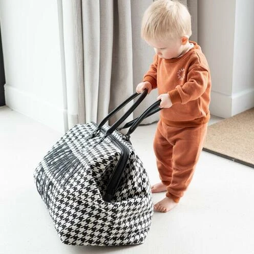 – Le sac à langer est muni de plusieurs systèmes d’accroches qui permettent de le porter à la main ou à l’épaule.