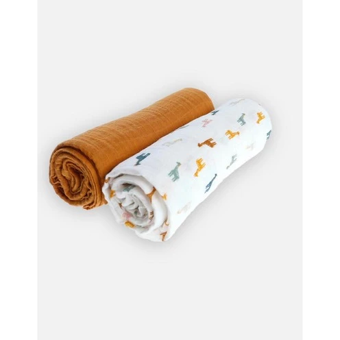 Set 2 langes 100×100 Mix & Match Girafes Multicolore coton bio