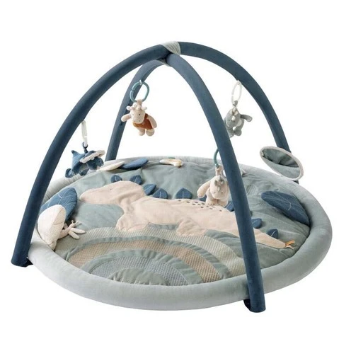 Le tapis d’éveil de la collection Tiga, Stegi & Ops en Veloudoux est parfaitement adapté pour stimuler la motricité, le développement intellectuel et les sens de l’enfant grâce aux différentes matières et sons qui le constituent (miroir, pouêt, papier froissé et hochet).