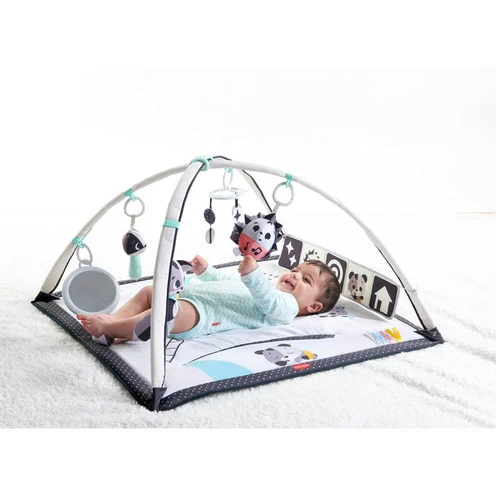 Tapis évolutif avec de nombreuses activités : livre en tissu, miroir, mobile, anneau de dentition…