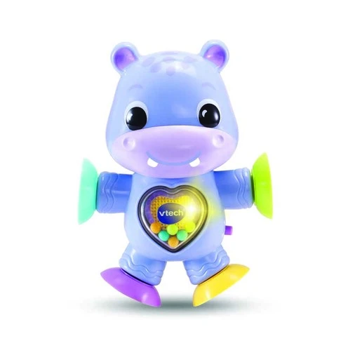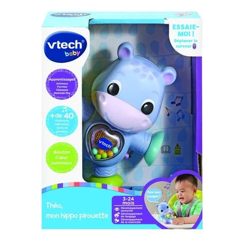 – Bébé s’amuse à l’attraper, le secouer ou le faire tourner et développe sa motricité fine. Le détecteur de mouvement reconnaît quand Bébé secoue l’hippo et déclenche des sons rigolos.