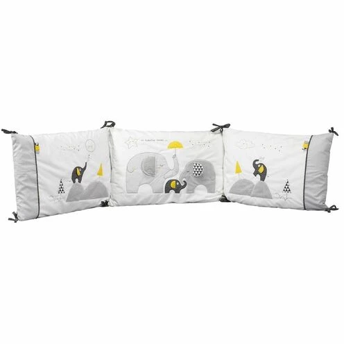 Son camaïeu de gris et sa délicate touche de couleur « jaune citron » font du tour de lit Babyfan un élément de décoration très apprécié par les petits garçons comme pour les petites filles.