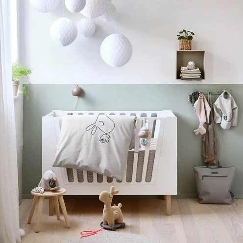 – Doté de liens, le tour de lit s’attache facilement au lit de bébé.