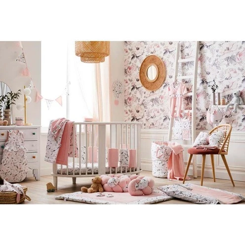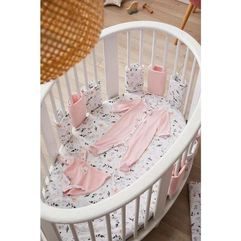 – Ce tour de lit est composé de 10 éléments ouatinés à positionner autour des barreaux du lit grâce à des bandes auto-agrippantes afin d’éviter les chocs.