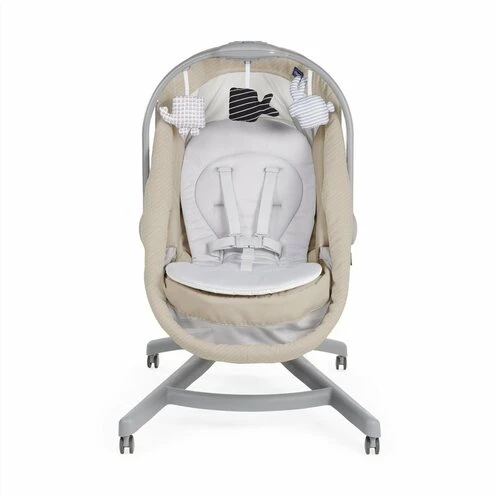 – Dans la configuration transat, Baby Hug 4 in 1 Air est légèrement incliné pour que bébé s’amuse avec une barre de jeu sonore et lumineuse (utilisable de la naissance à 6 mois).