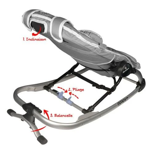Véritable cocon de douceur grâce à son tissu moelleux, il garantit à bébé un confort optimal. Son cale-tête rembourré, son dossier inclinable et sa fonction balancelle l’aideront également à bien se reposer.