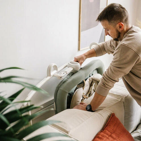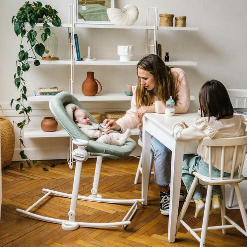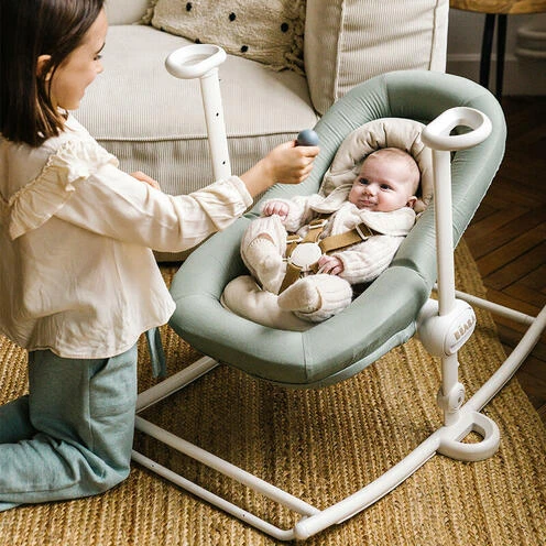 – Fonction bascule avec frein intégré : pour bercer l’enfant en toute sécurité.
