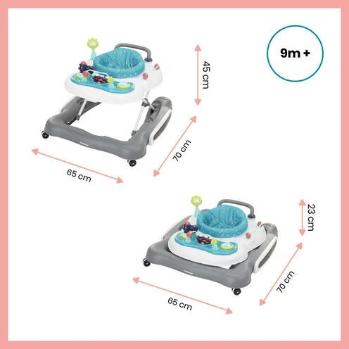 – Confortable, ergonomique, le trotteur 5 en 1 est également pliable. Il se range ou se transporte facilement à plat.